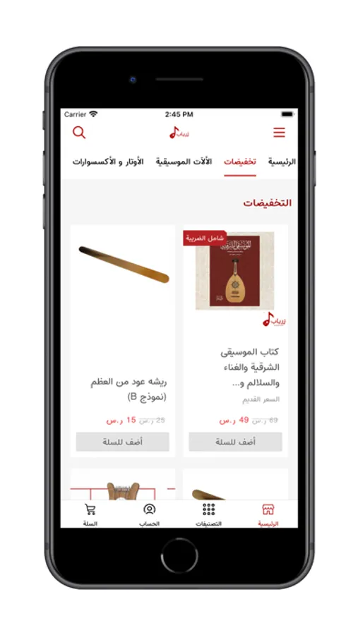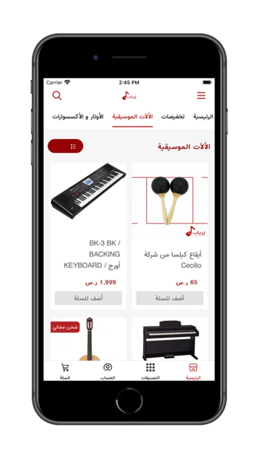 مجموعة واسعة من الالات الموسيقية واكسسواراتها و العديد من العروض الحصرية من زرياب