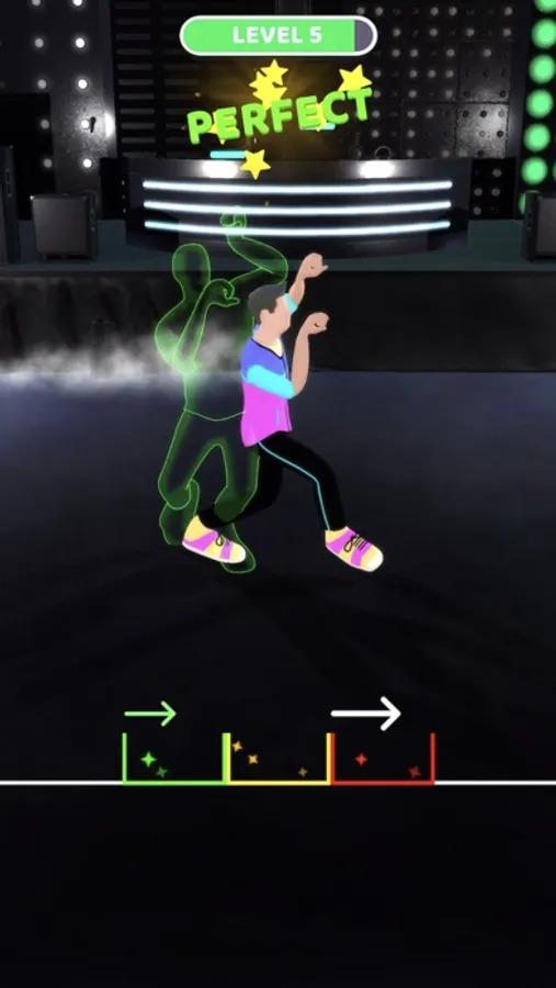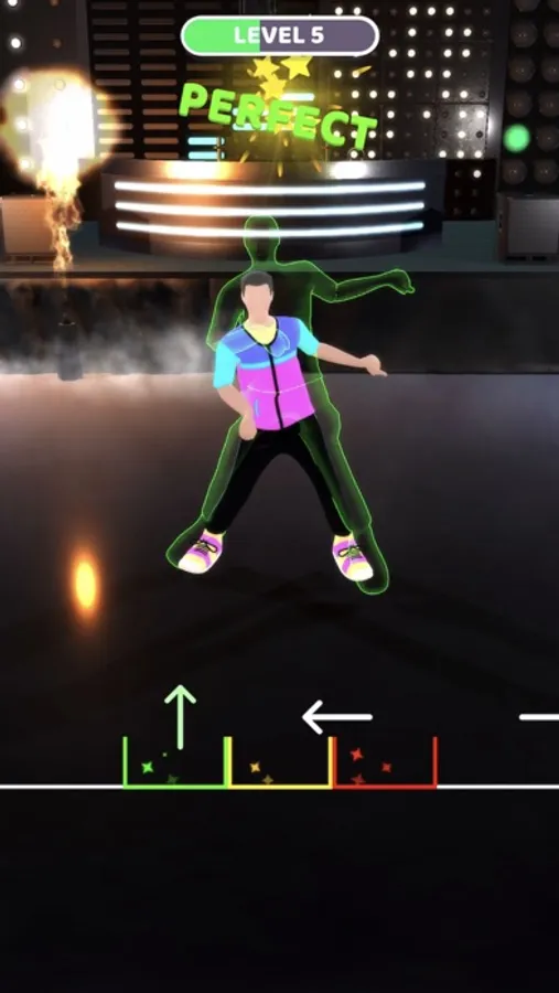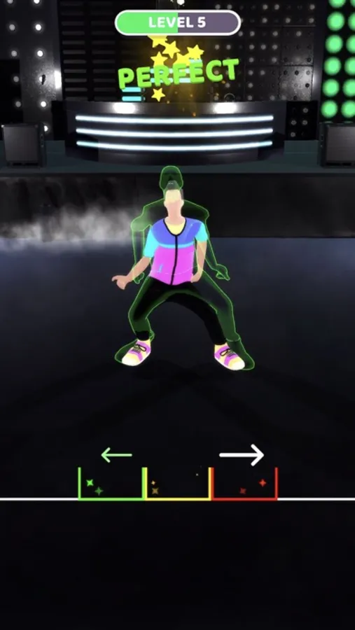 Swipe in correct direction to dance and score.