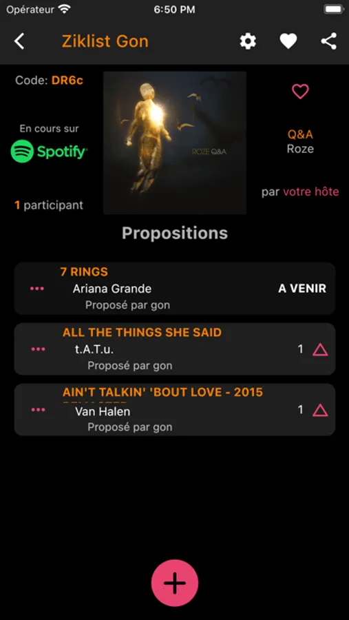 The host of a simple party, the organizer of a wedding, the manager of a bar or just a group of friends, can create their music playlist (Ziklist) in the Zikup application through a link to the host's Spotify Premium account.
