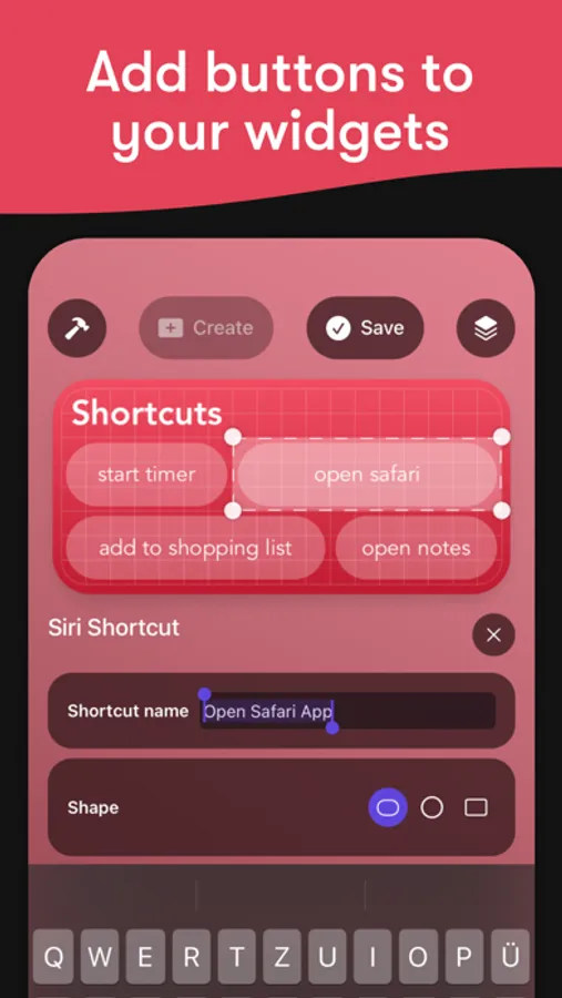 - Add buttons to your widgets to open websites or run shortcuts.