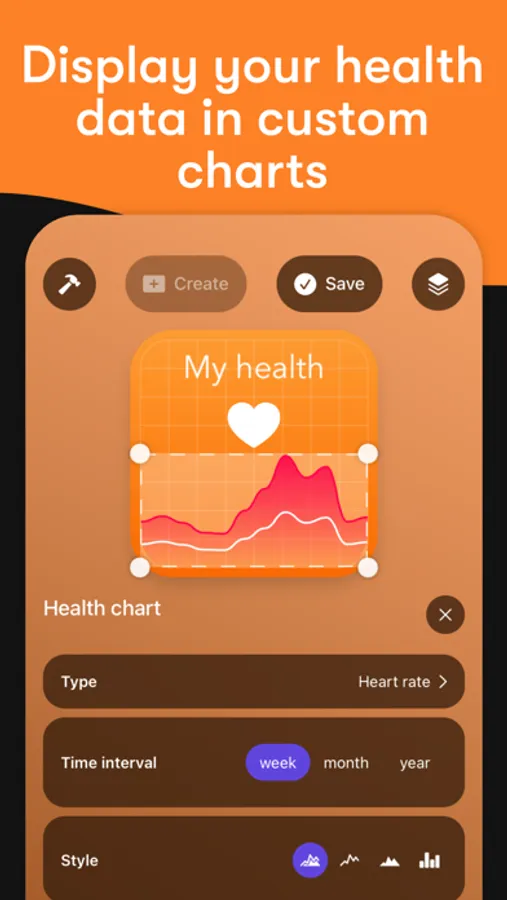 - Health charts: display your heart rate, activity, walk distance and many more health data points in our fully customisable health charts to see how your body is doing. (Flex Widgets gets this data from your Health app)