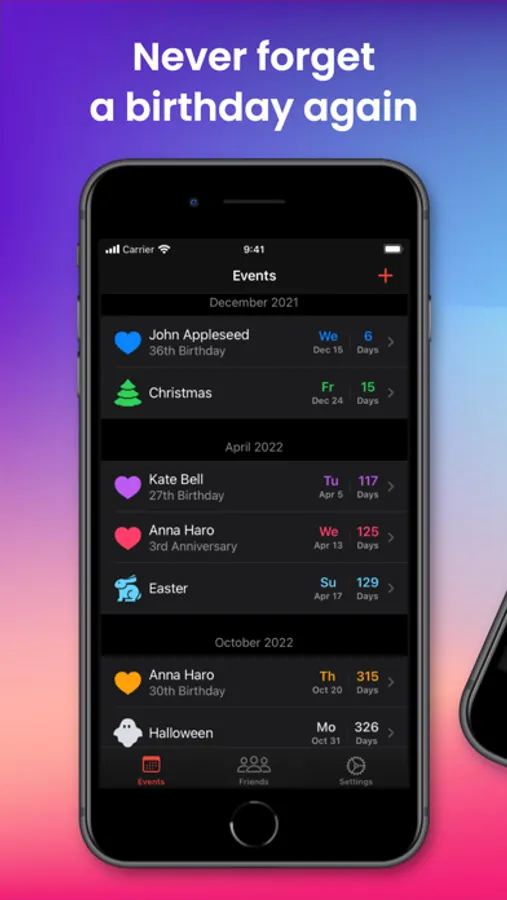 * Create events for any occasion, whether it’s birthdays, anniversaries, name days or Christmas
