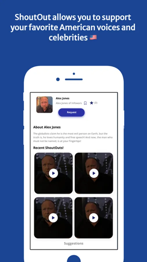ShoutOut allows you to book a video roast, birthday wish, or just a personalized video from freedom’s greatest personalities like Alex Jones, the Hodge Twins, and more!