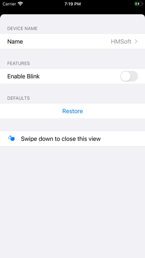 The ON-STAGE app can be used to switch a Bluetooth LE attached LED sign on or off.