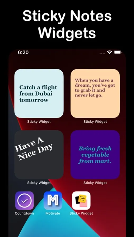 Now you can add unlimited no of sticky widgets in different size to your Home Screen.