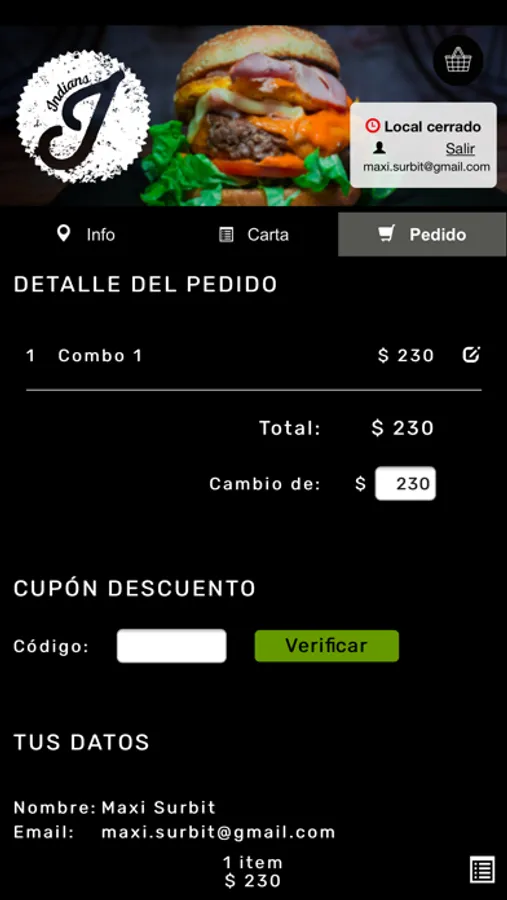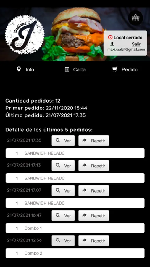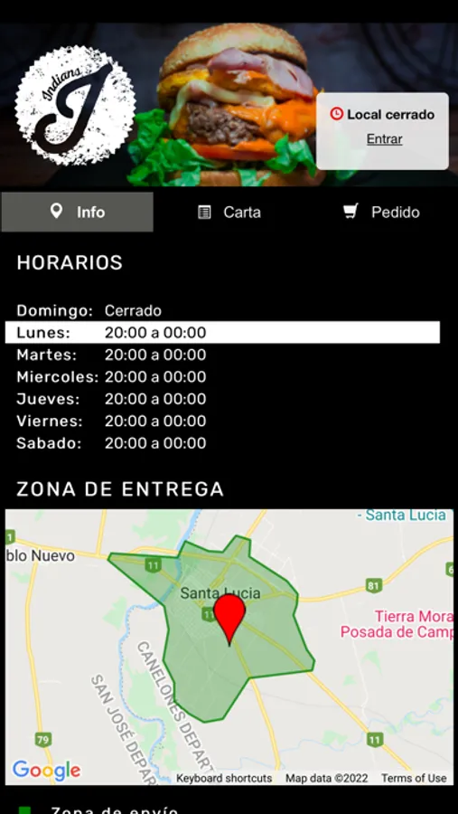 rápida al local de gastronómico Indian's Delivery