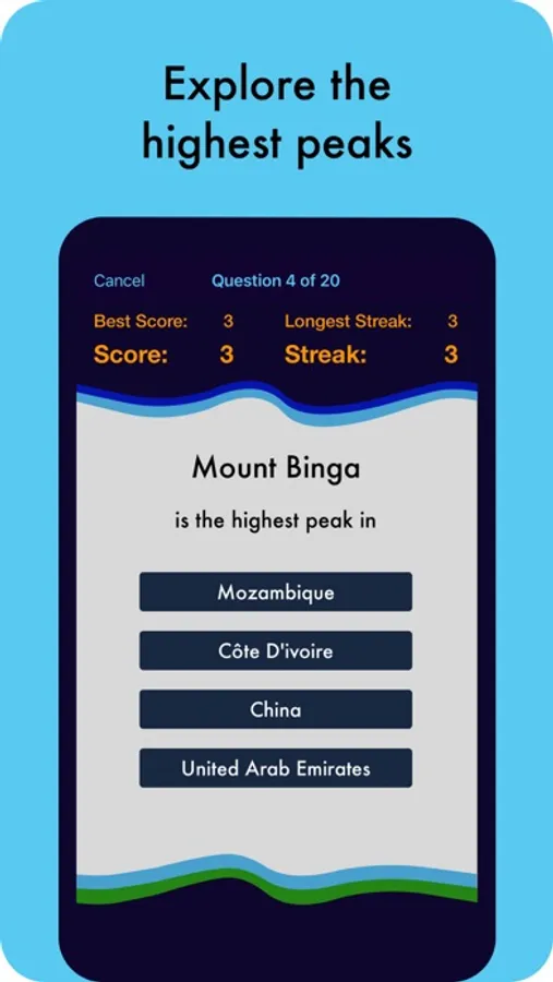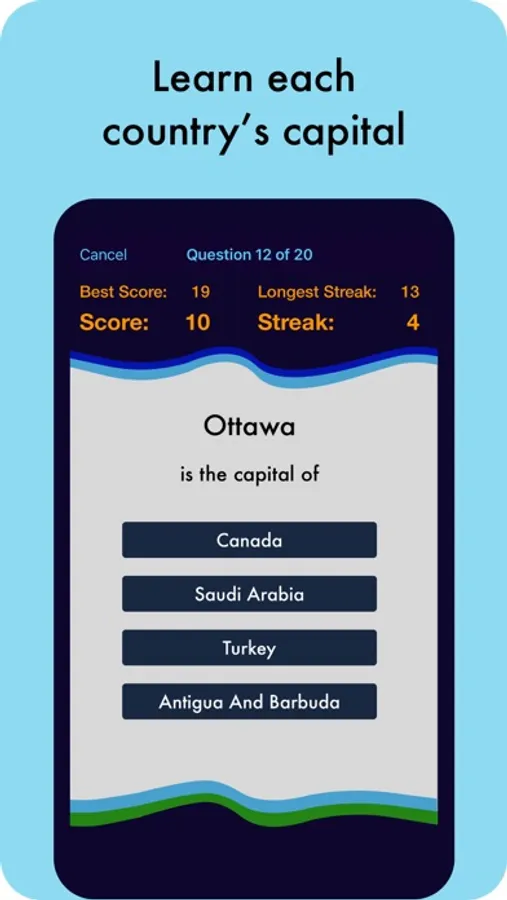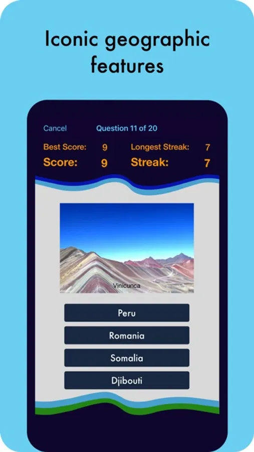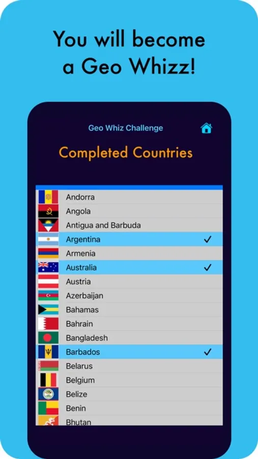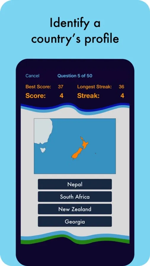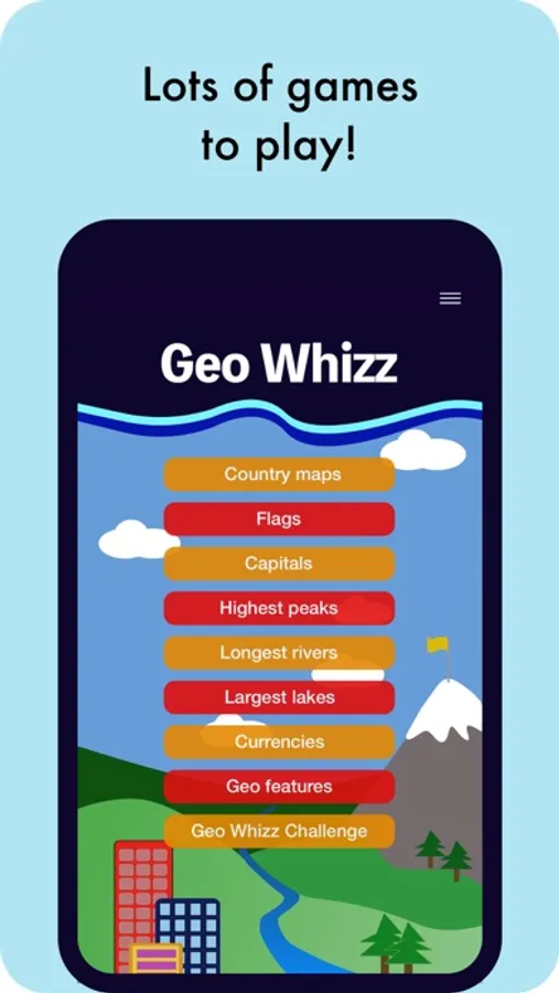 If you love a good geography quiz...Geo Whizz is the game for you! Enjoy testing your knowledge of the world's flags, capitals, maps, currencies, largest lakes, longest rivers, highest peaks and geographical features of every country.