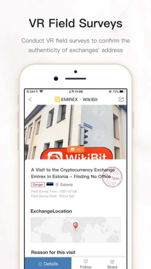 WikiBit Field Survey: investigation of global exchanges, direct access to offices, on-site surveys, and live shooting, allowing users to see the most authentic content, making scam and clone exchanges visible, and creating safer and more justified investment environment.