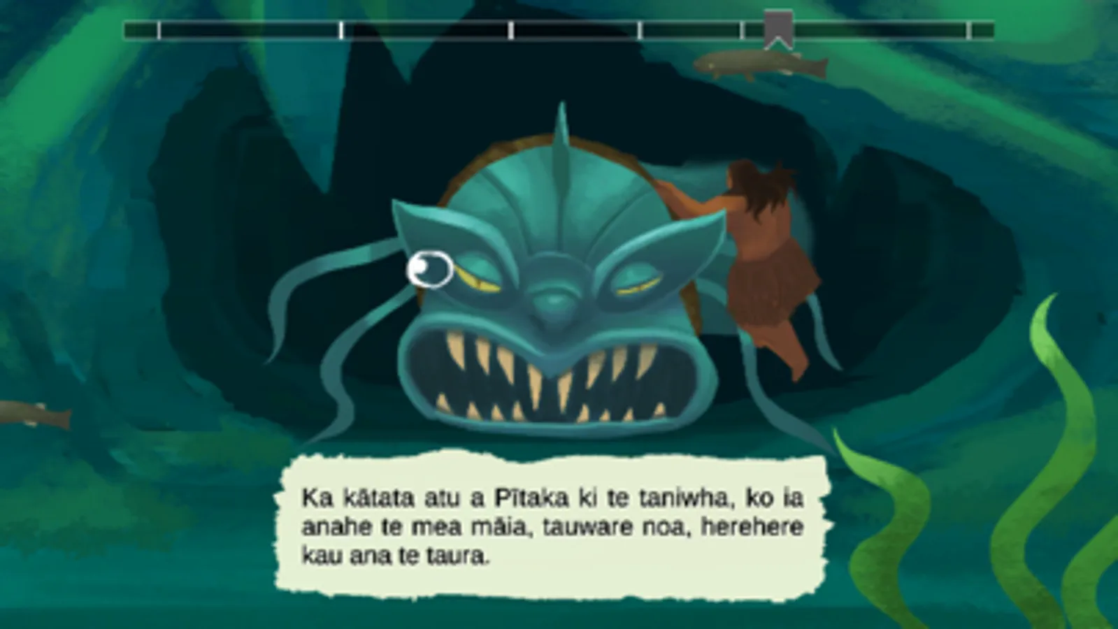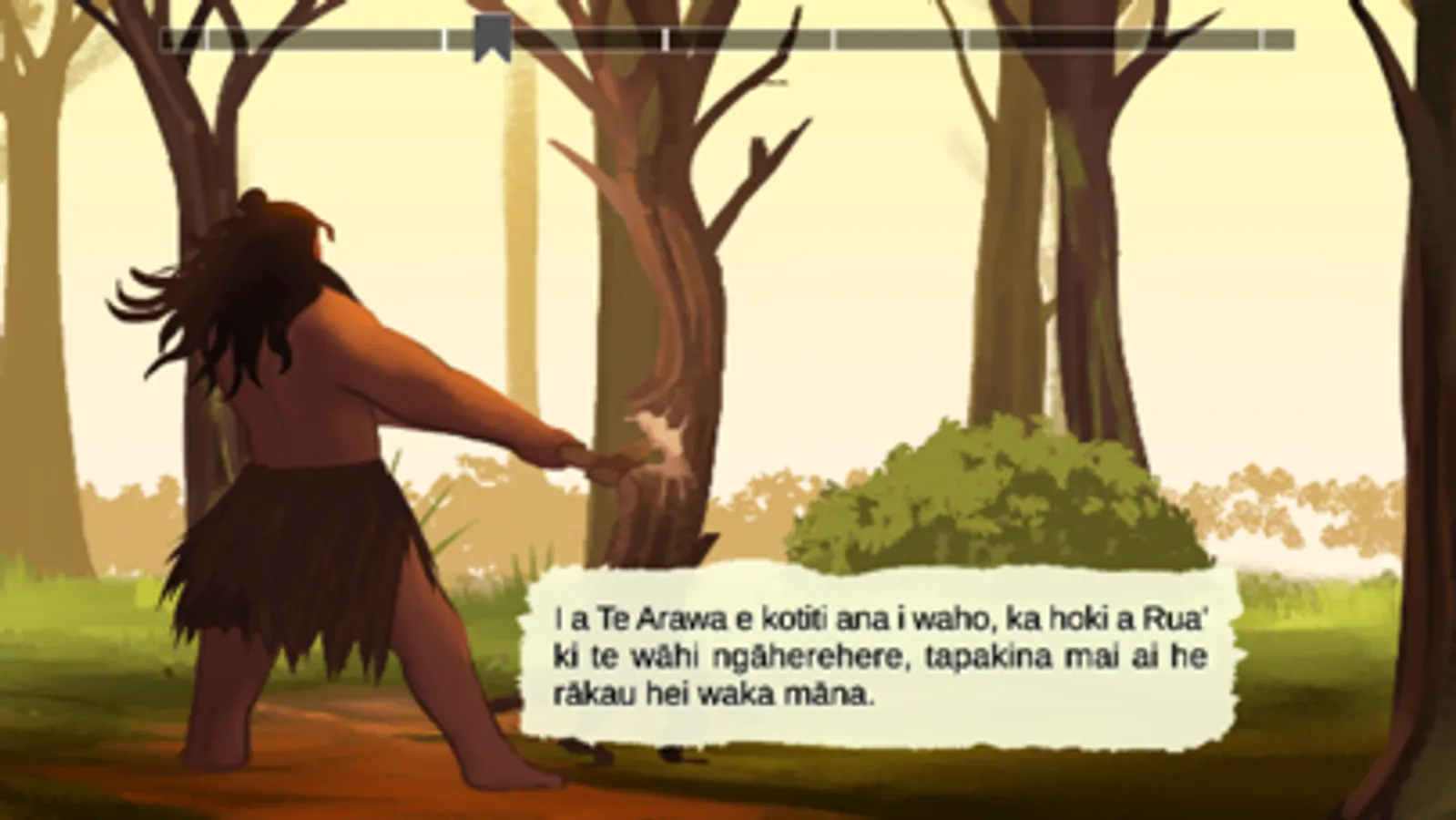 The Pekehaua story is presented as a scrolling digital story book. The story includes parallax graphics with follow along text and is available in Te Reo and English.