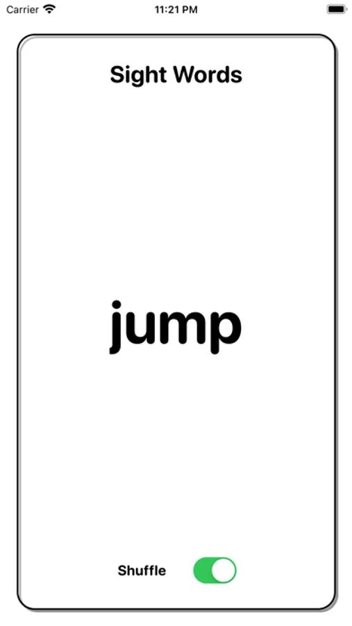 This Flash Cards App was built with simplicity in mind. We want to offer the teachers or the parents the easiest way to access the flash cards. The cards are changing in alphabetical order with a simple tap on the screen, or can be shuffled with the shuffle switch at the bottom. For children, the experience is very similar to what it would be using cardboard flashcards.
