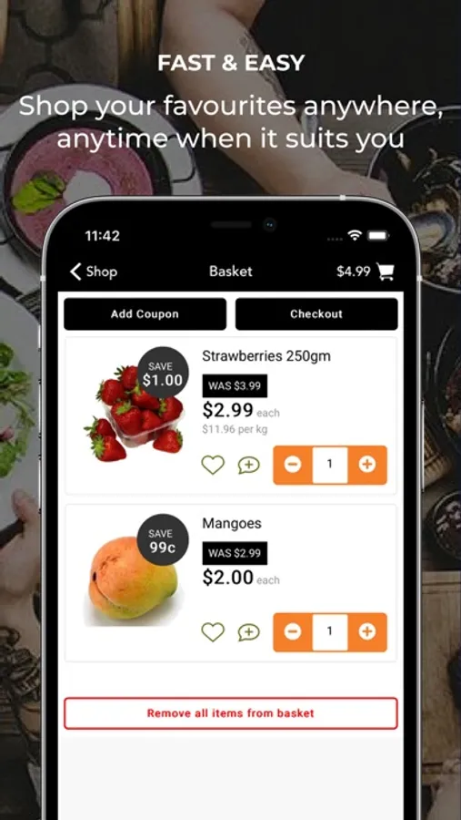 Browse the aisles, just like in-store. You can view your last order and your frequent purchases and add them quickly to your basket again.