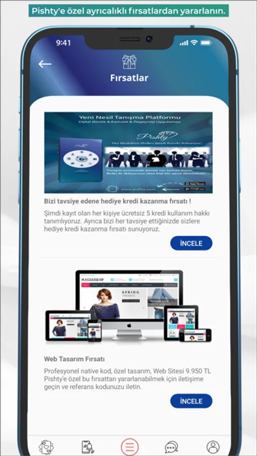 Dünya’nın ilk ve tek gerçek dijital kartvizit uygulaması! Pishty, günümüz dünyasında basılı olarak kullanılan kişi ve kurumlara ait kartvizitlerin dijital ortamda saklamasına, böylece ayrıca çaba sarf etmeden her yere yanında götürebilmesine ve istenildiği anda kolayca ulaşılıp paylaşılmasına imkan sağlayarak bir ilki başarmıştır.