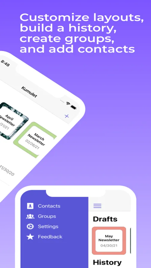 - When sending out newsletters, just select the desired group and Kumulet will pre-populate the recipients by bcc’ing all contacts in the group