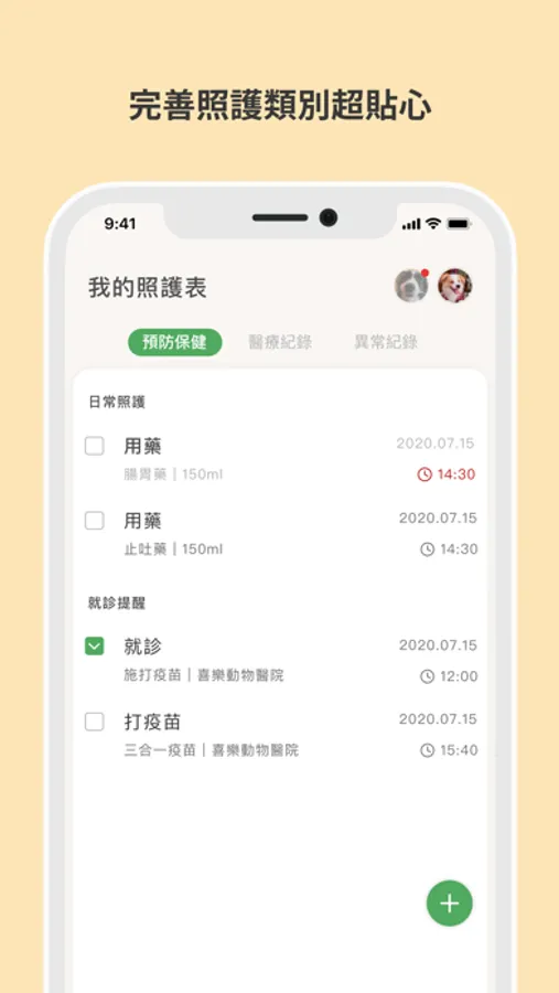 協助您紀錄關於愛寵的各種代辦事項,還能設置提醒讓您照顧更得心應手。