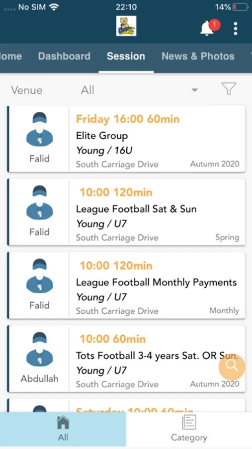 Our own branded app to facilitate booking on to our coaching programmes for 4 year olds to Adults of all levels - Schools, Club and Holiday programmes