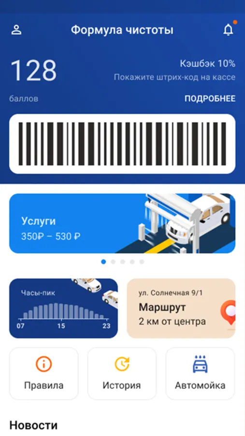 Мобильное приложение "Формула чистоты" позволяется клиентам автомойки накапливать баллы и оплачивать ими часть стоимости услуг