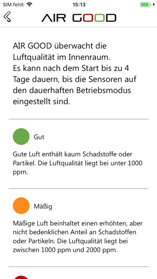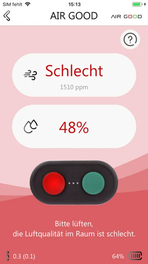 Lesen Sie die Messdaten der Ampel bequem mit der AIR GOOD App aus. In drei Farben gibt sie den Luftqualitätsstatus des Raums wieder. Bei korrektem Lüftungsverhalten leuchtet die Ampel durchgehend grün. Zeigt sie regelmäßig orange oder rot, ist das ein Indikator, dass Sie Ihr Lüftungsverhalten anpassen sollten.