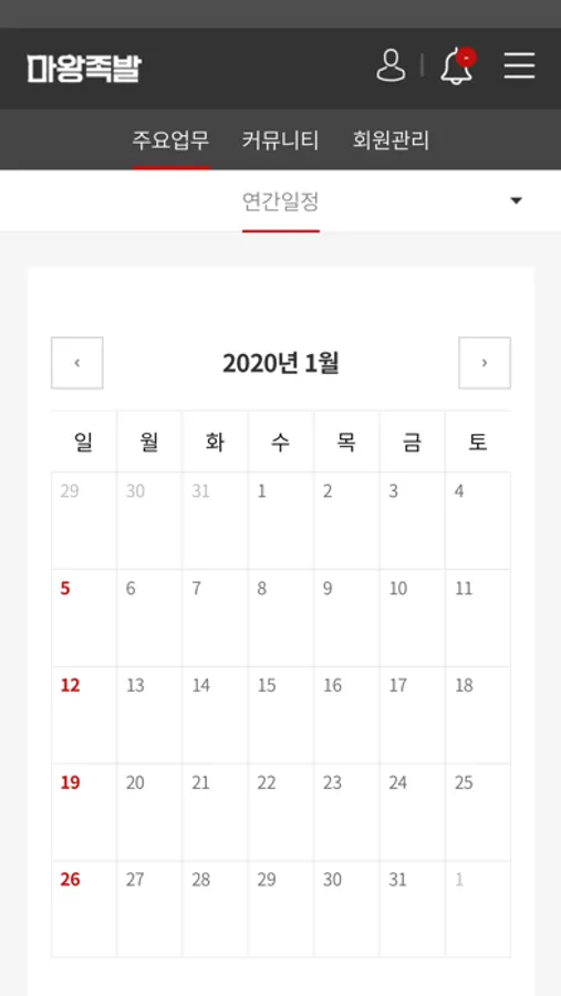 연간일정, 공지사항과 각종 매뉴얼이 포함되어 있습니다.