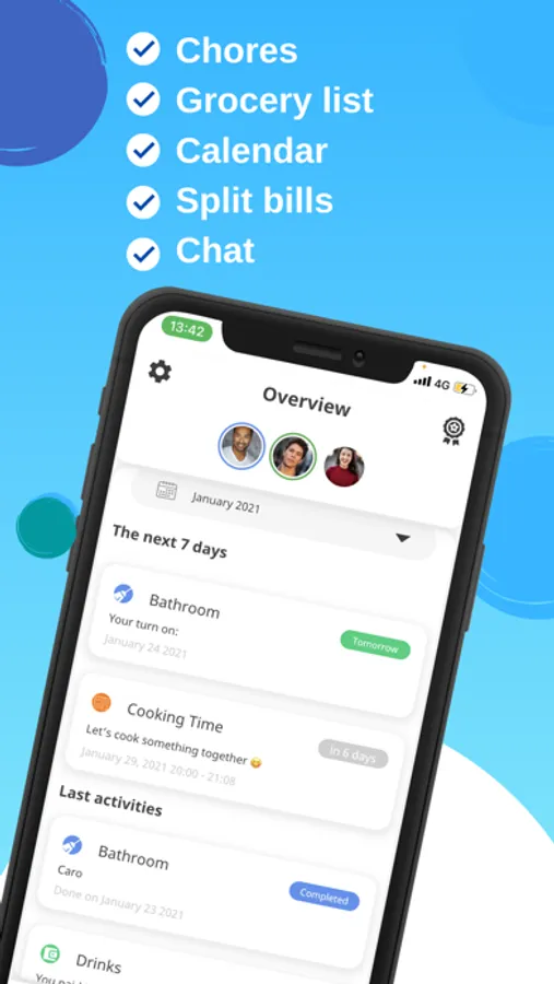 Struggling to remember who’s taking out the trash? Wondering who last bought toilet paper? Tired of the same person always covering the bills? Say goodbye to shared living chaos – Flatify brings order to your home!