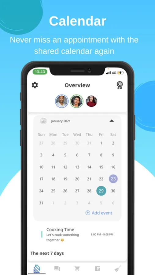 • Add birthdays, house meetings, and important events directly to Flatify.