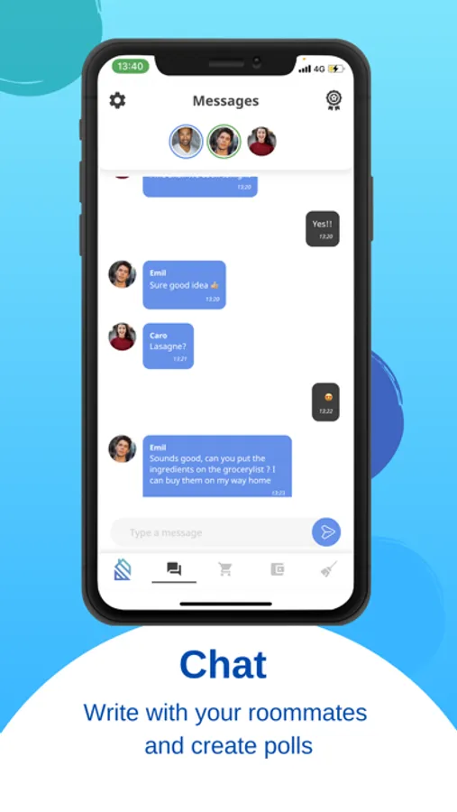 • Chat & polls – Quickly decide who cooks or does the shopping