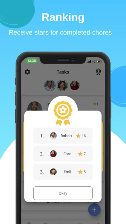 • Chore schedule & tasks – Automatic reminders and points for completed chores