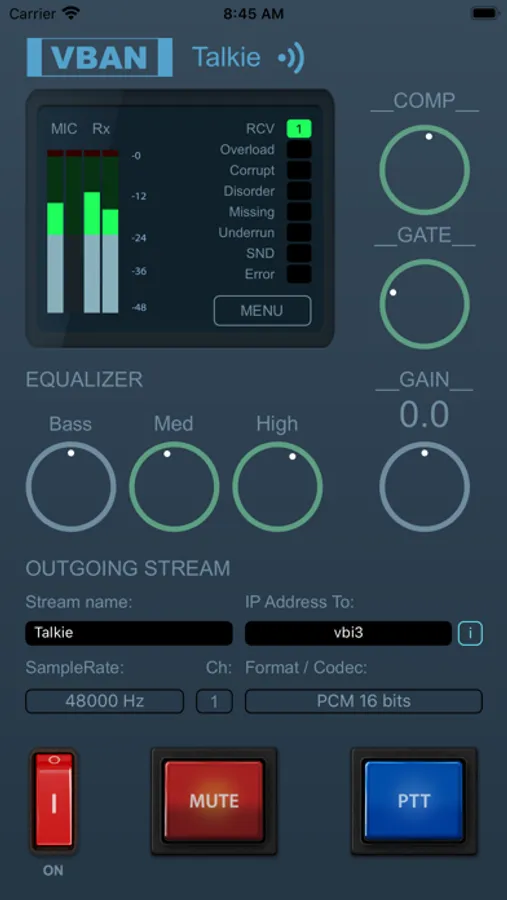 VBAN protocol is made to transport audio in native PCM format (16 kHz to 48 kHz - 8 to 24 Bits) on any local network (LAN or WLAN). VBAN Stream can be managed and mixed by Voicemeeter Application, the Virtual Audio Device Mixer (www.voicemeeter.com)