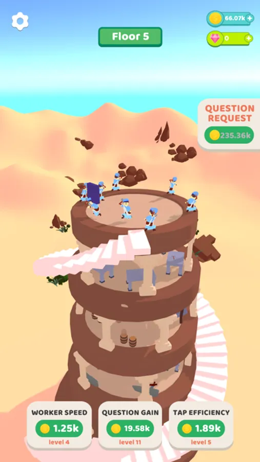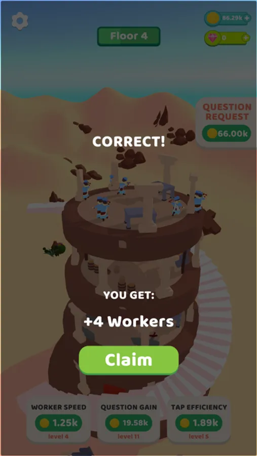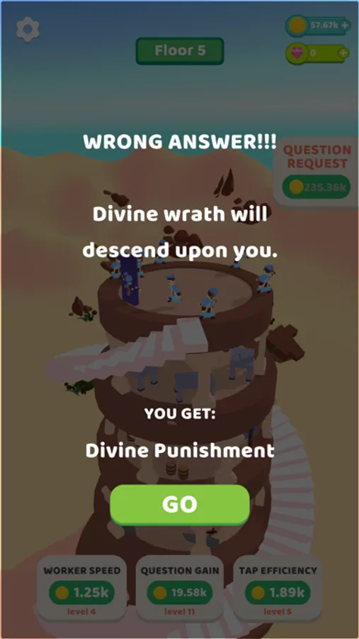Our workers are trying to rise higher and reach God by building our tower. Let's help them in this way! Buy questions from God with the gold we earned. Remember, the more correct answers you get, the higher you go!