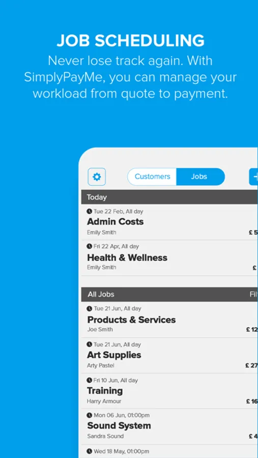 You can send quotes, invoices and receipts as well as manage an entire team. Schedule and delegate job as you see fit and track it all from your dashboard. Start taking payments now from 0.45% per transaction with Pay by Bank App and from 1.65% on card payments.