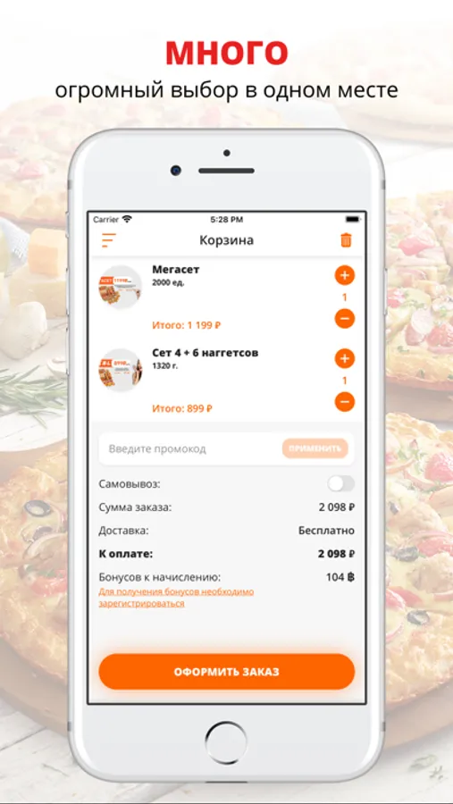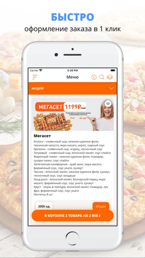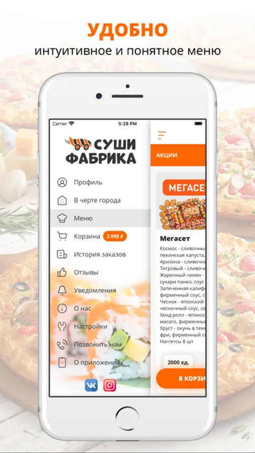 посмотреть меню и совершить онлайн-заказ,