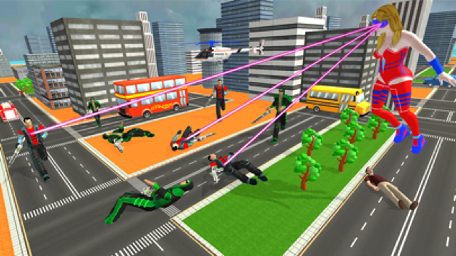 In this adventures game, you are given two superheroes with supernatural powers.These superheroes help you to stop the criminals from destroying the city.Your superhero have the power to demolish anything with super laser power, have the wings to fly over the city, Super run, Super jumps, and Super punch to destroy the enemies.In this Endless Battleground, you are free to choose the mission in city Alien invasion, Gangster fighting, Killing kidnappers, flying missions and a lot more in this latest version of Endless Battleground.