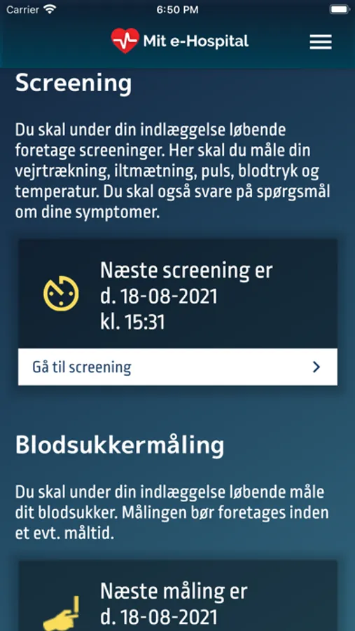 Log ind med NemID og anvend appen under din hjemmeindlæggelse.