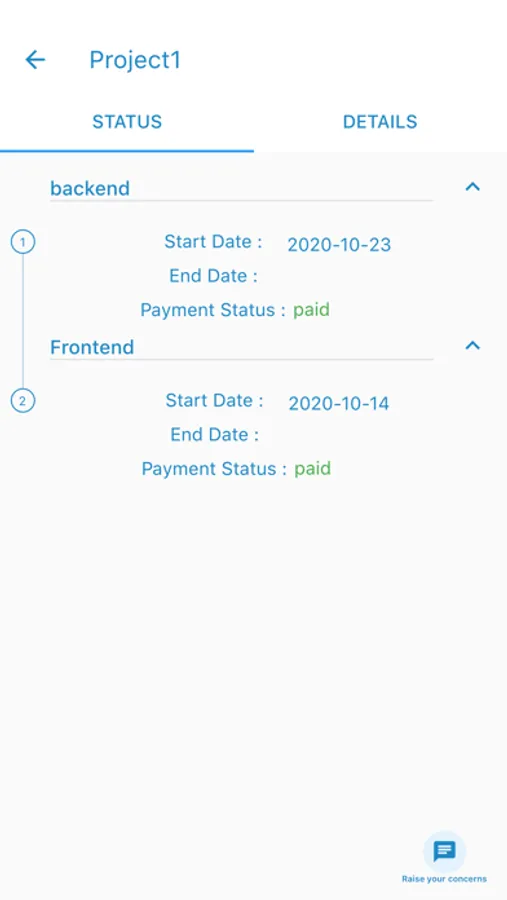 You can view the current status of your project, like current status,starting date of project,How many percentage completed your project and expected delivery date of your project.