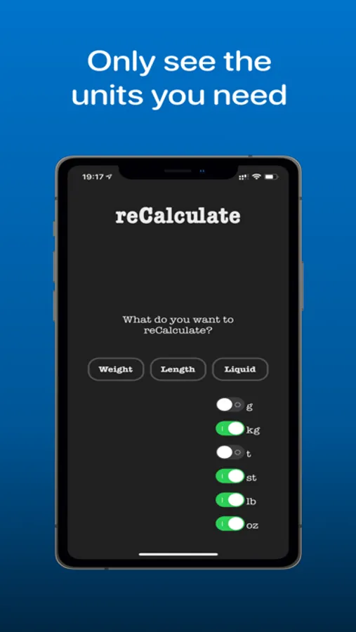Convert numerical values from one unit to a selection of others, all in a simple customisable interface. Select which units you want to convert between by using the switches.