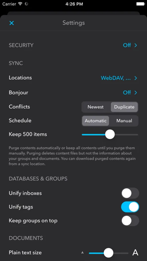 DEVONthink To Go is best used with DEVONthink for Mac and on multiple devices. Synchronize your databases securely and privately over the local network or through a cloud service of your choice. You decide what data is synced, when, and where. Strong encryption makes sure that your data belongs to you, not to your service provider or us.