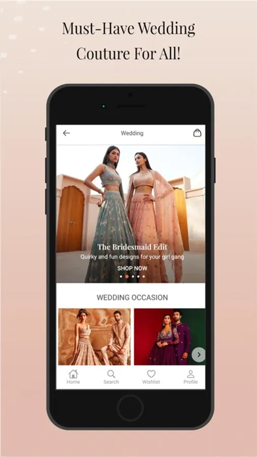 Explore a plethora of premium designer styles for weddings, along with a vast range of accessories & footwear options. Discover the latest contemporary wear for parties, work, or casual outings, all available at your fingertips through our exclusive shopping app.
