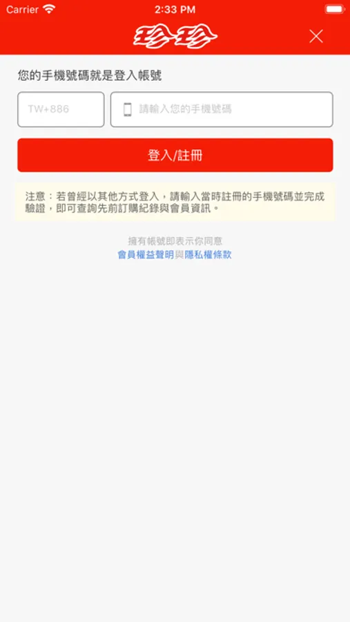 6. 使用『手機號碼』即可輕鬆加入珍珍之友會員。