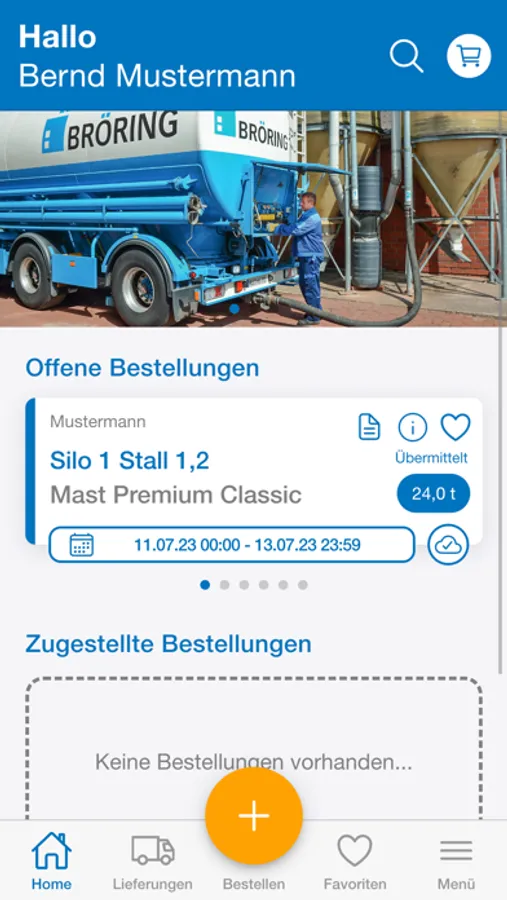 Mit der BRÖRING Bestell-App können Sie einfach und schnell Futtermittel online bestellen und Ihre Bestellungen sicher verwalten – auch unterwegs. Für die Nutzung der BRÖRING Bestell-App müssen Sie sich zuerst registrieren. Dafür benötigen wir Ihren Vornamen, Nachnamen, Ihre Telefonnummer, E-Mail-Adresse und Anschrift. Sobald Sie sich registriert haben, erhalten Sie eine E-Mail zur Bestätigung Ihres Zugangs. Vergeben Sie nun noch Ihr persönliches Passwort. Und schon können Sie sich einloggen und Futtermittel bestellen.