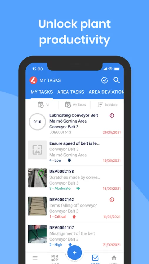 • Planned / Corrective / Preventive Maintenance – View and execute maintenance plans, request corrective maintenance and schedule preventive maintenance.