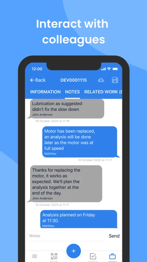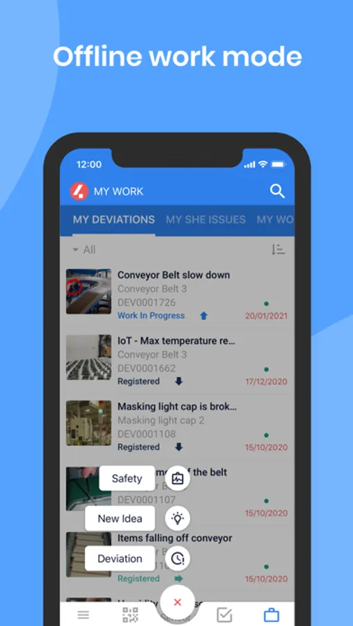 • Deviation Management - Receive deviation notifications, register deviations, add pictures/comments, annotate, instantly see proposed corrective countermeasures, access manuals in Q&A style, search through historical data, use chat function