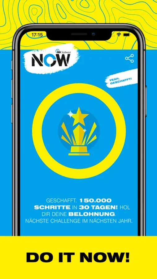 Die Schritte-Challenge dauert genau 30 Tage und startet am Tag der Erstteilnahme über die IKK NOW App. Erreiche beim ersten Versuch/Kalenderjahr 150k Schritte in 30 Tagen und staube 60 Euro Bonus ab.