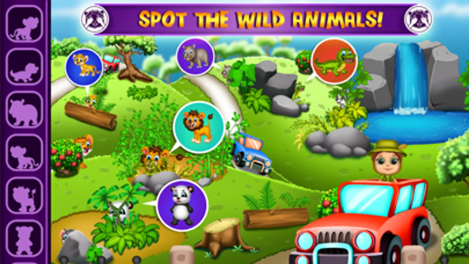 - Jungle Animal Safari - Find all hidden animals. Let them learn about wild animals such as: Lion, Leopard, Crocodiles, Zebra, Black Panther, Hippopotamus, Elephant, and Monkey.