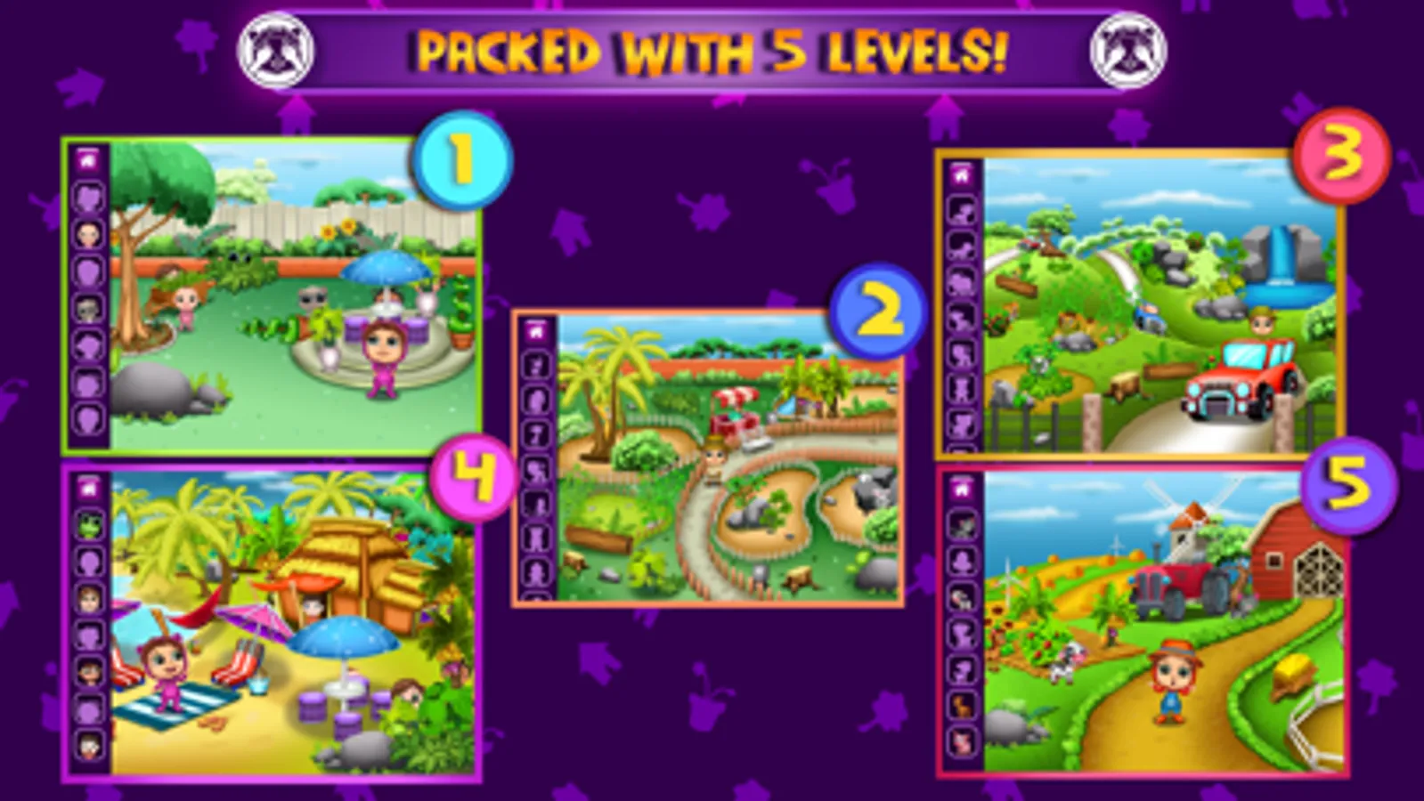 There are various places where babies and wild animals can be hidden. Kids have to find all hidden animals and friends to complete the level. Don`t worry, it is intuitive and the difficulty is adjusted for kids!