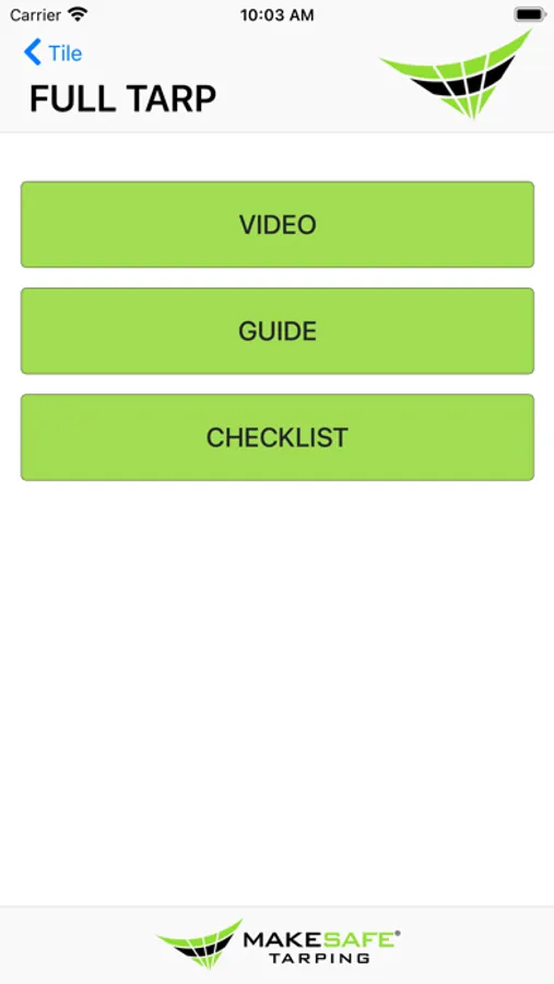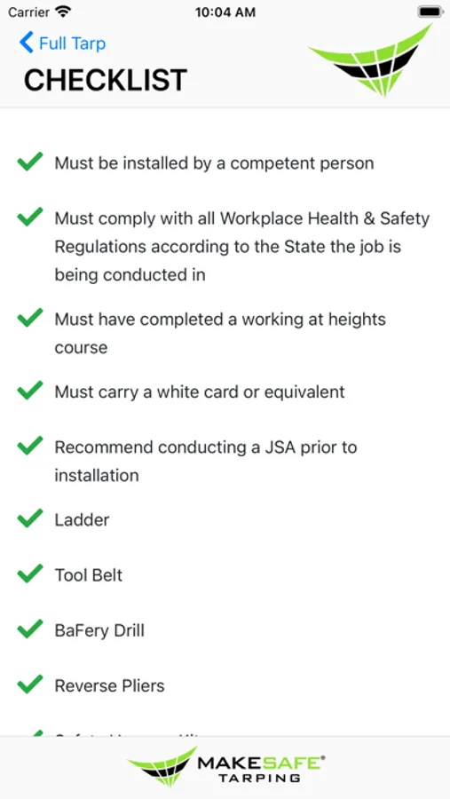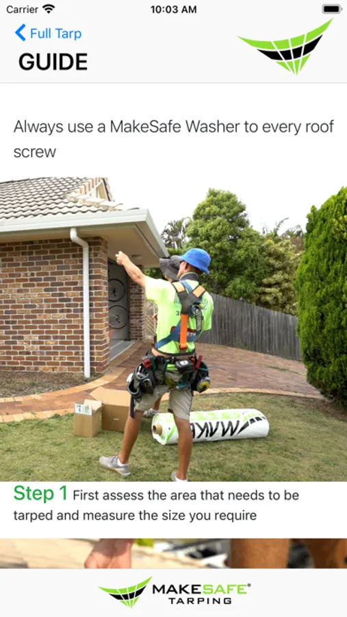 The MakeSafe App is designed to assist builder with guides, checklists and videos that show best practice in the installation of MakeSafe Tarping.