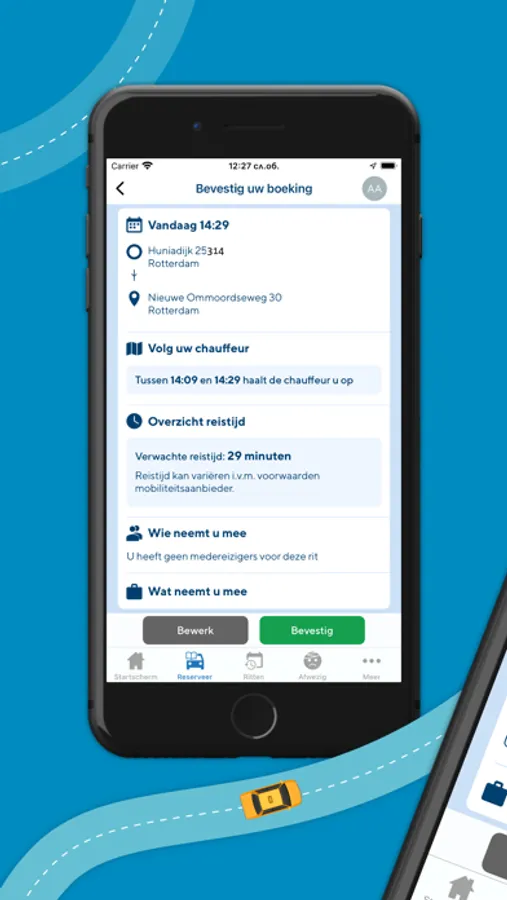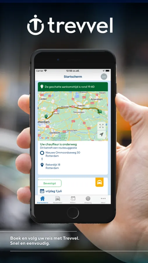 De app laat zien hoe laat u wordt opgehaald en waar de chauffeur op dat moment rijdt, zodat u zich goed kunt voorbereiden op de reis.
