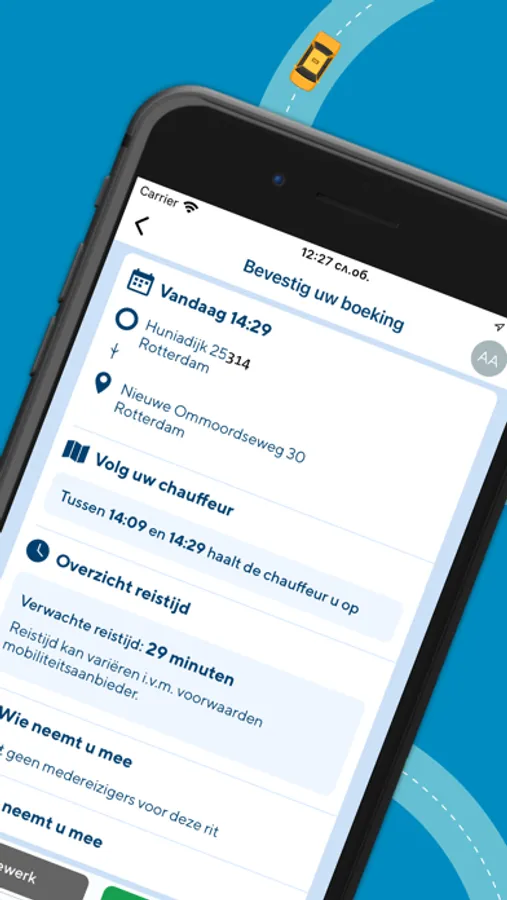 U kunt tot 60 minuten voor de ophaaltijd gratis een rit wijzigen of annuleren.