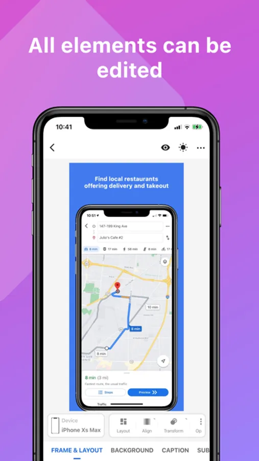 Bring your app screenshots to life faster than ever. App Mockup has templates for every type of app. Update device frames, layouts, gradients, title and subtitle at the click of a button.