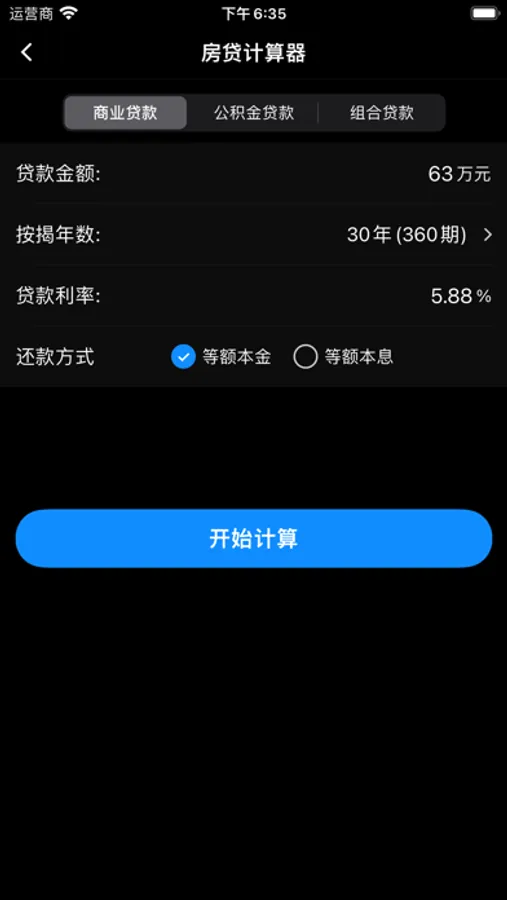 11. 房贷计算器,支持商业贷款、公积金贷款、组合贷款