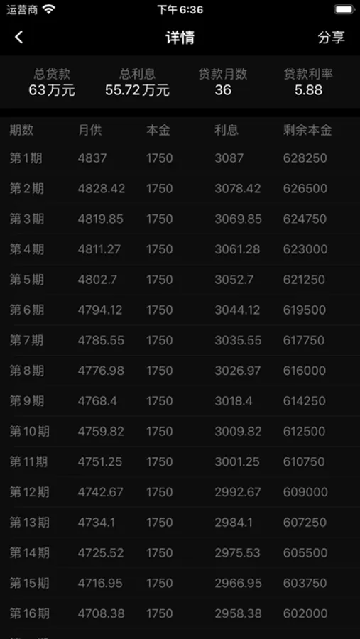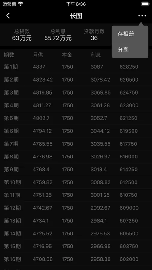 13. 房贷计算结果一目了然,可以保存为图片、分享给好友