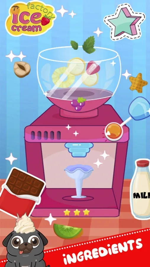 Do you want to learn how to make real ice cream and help your mother in the kitchen? knows the recipe for making the most delicious ice cream? This game and the dog can clearly show the easiest way that you can try with your friends. Follow the hints and play cooking!